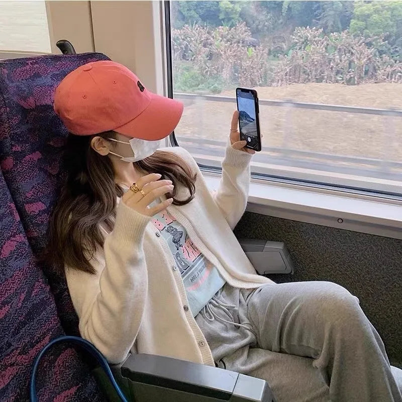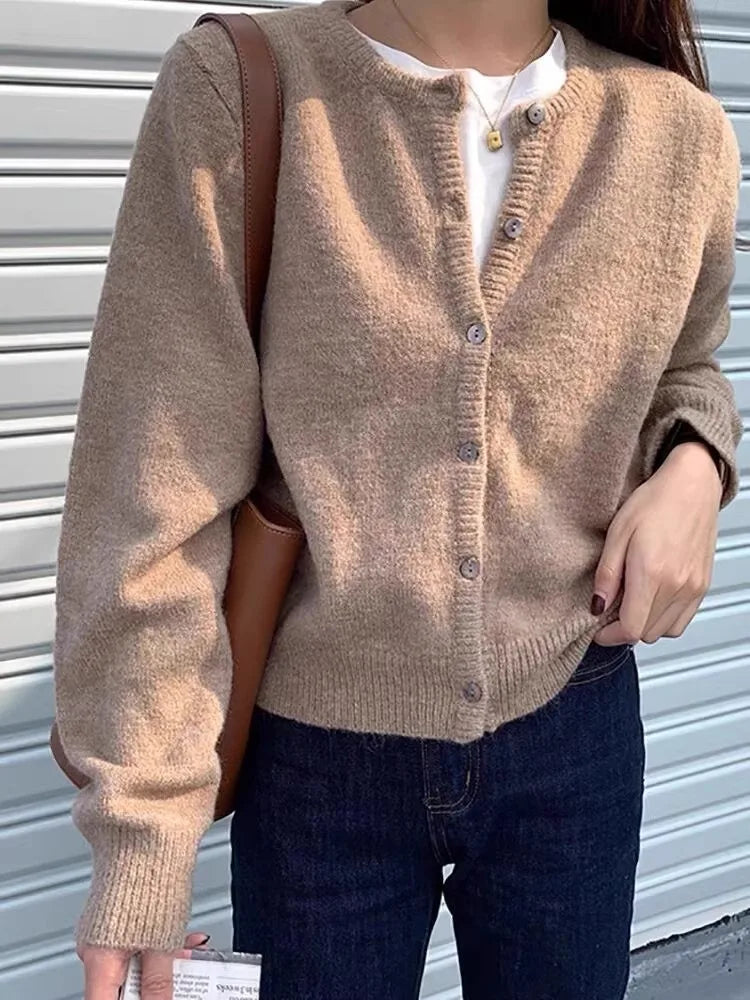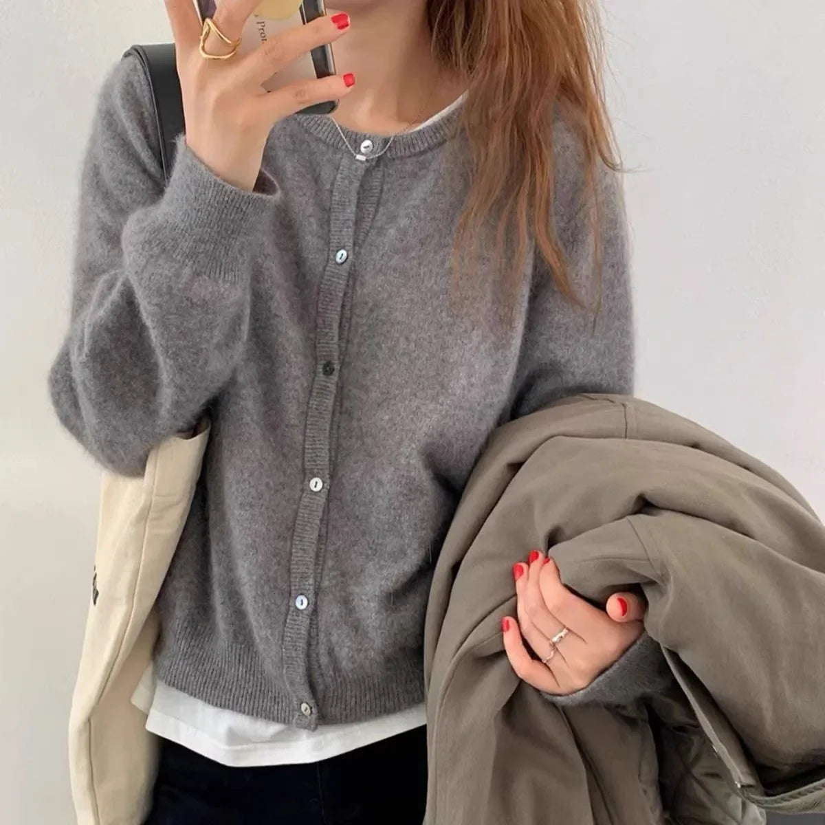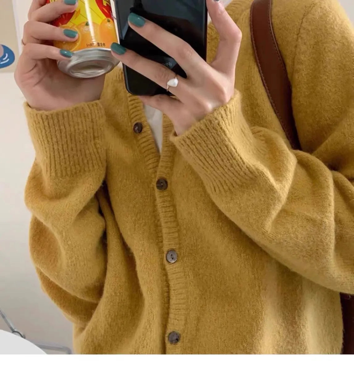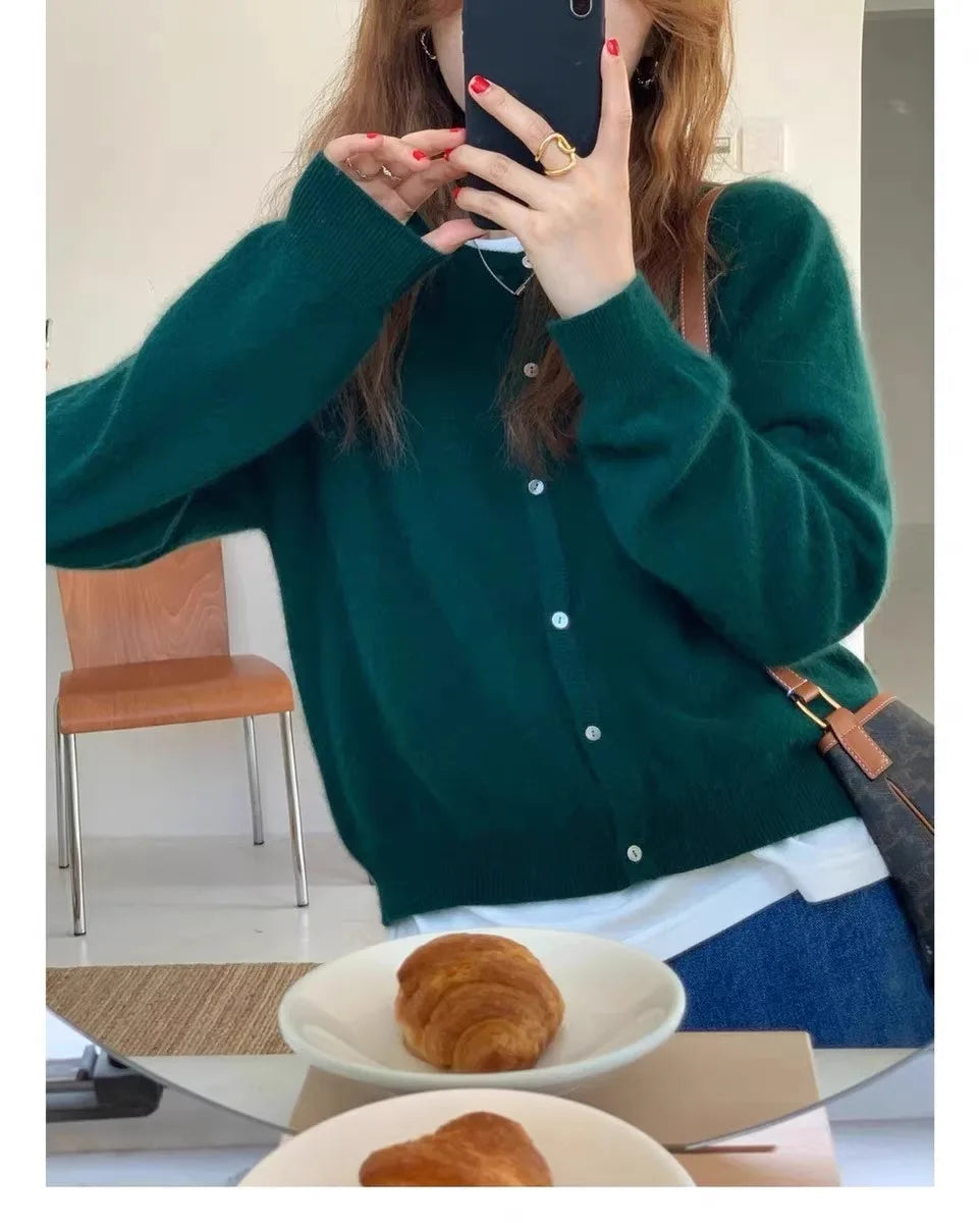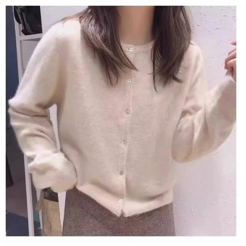 100% pure cashmere cardigan women's new autumn and winter round neck sweater loose Korean knitted sweater short coat