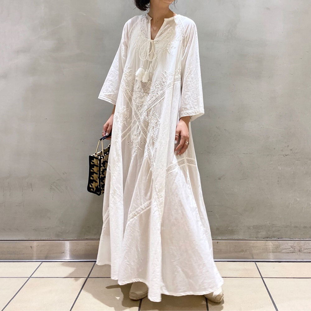 Retro style A-line skirt for women summer new Japanese style lady temperament loose lace dress for women