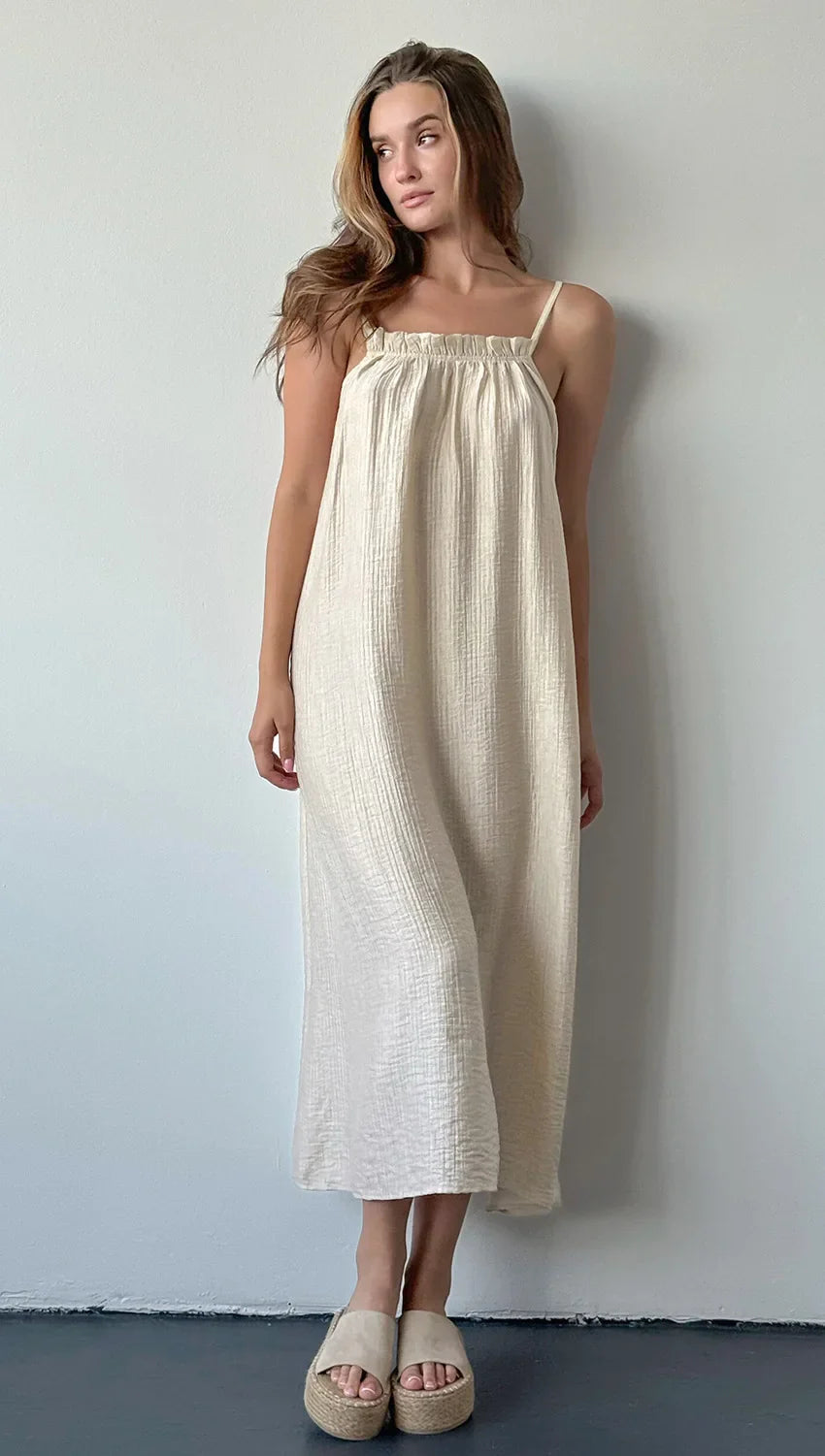 Backless Loose Kahki Pajamas 100% Cotton Casual Comfortable Long Dress Solid Color Homewear Sleepwear Summer Women Dresses