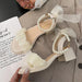 Black Platform Sandals Female Shoe Summer Lace Denim Women's High Heels Med Espadrilles Girls Laces Fashion Gladiator Beige