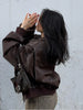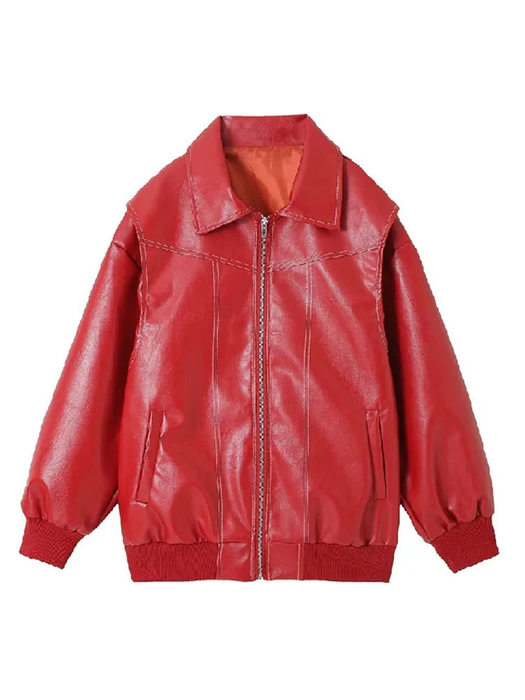 Casual Oversized Leather Jacket Women Fashion Lapel Long Sleeve Loose Zipper Female Coat Autumn Patchwork Loose Y2k Streetwear