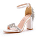 Crystal Queen High Heels White Wedding Sandals Bride Block Open Toe Prom Evening Formal Rhinestone Party Dress Shoes