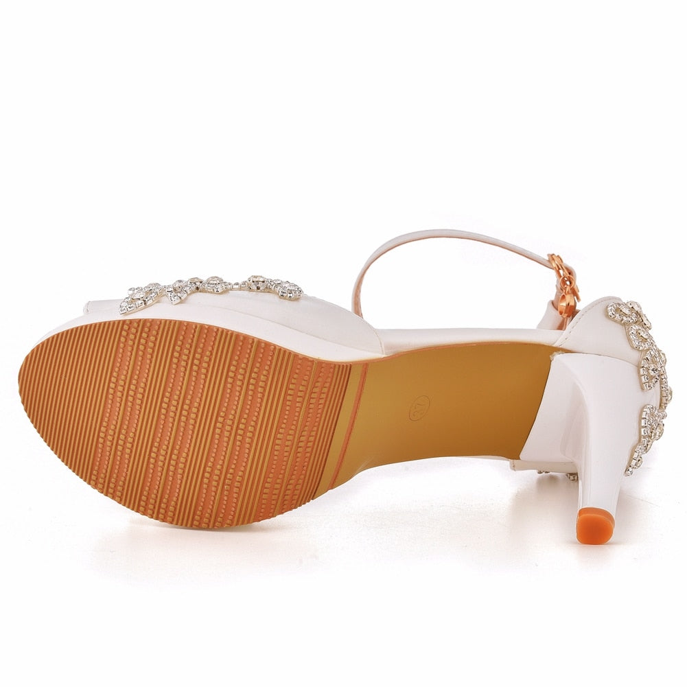 Crystal Queen Women Wedding Shoes Bride Sandals White Rhinestones Silver Platform Dress Thin High Heels Ladies Pumps