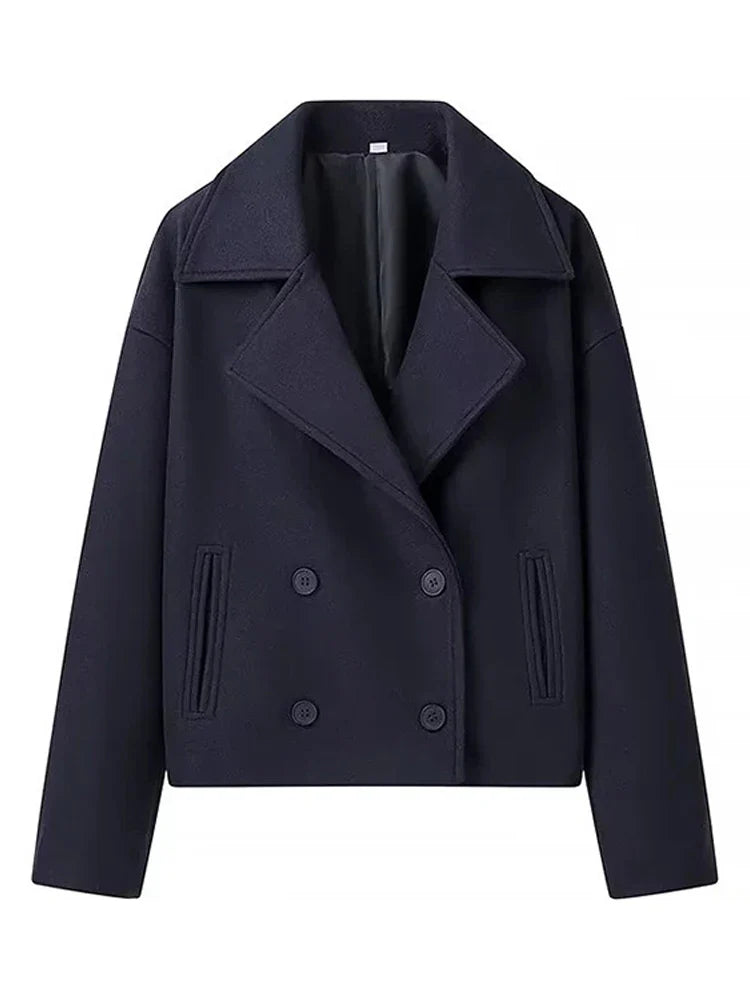 Fashion Short Woolen Jackets For Women Fleece Long Sleeved Double Breasted Lapel Pockets Coats Elegant Autumn Overcoat New