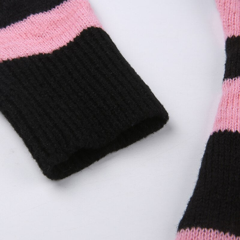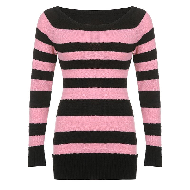 Stripe Off-Shoulder Sweater Mini Retro Dress