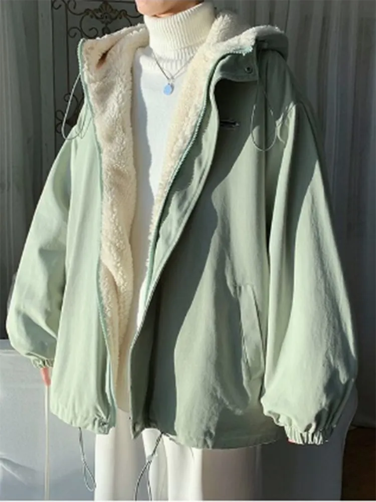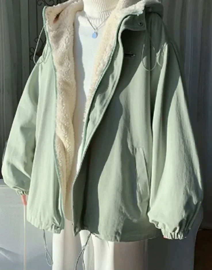winter lambwool fluff Parkas: Korean Cotton coats