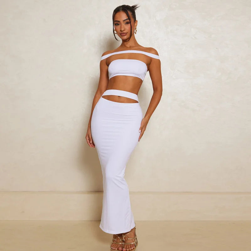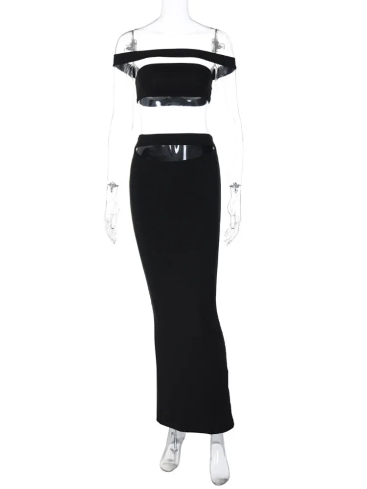 Strapless Sexy Two Piece Set Women Fashion Off-shoulder Sleeveless Crop Tops And Long Skirt Ladies Party Skirt Sets