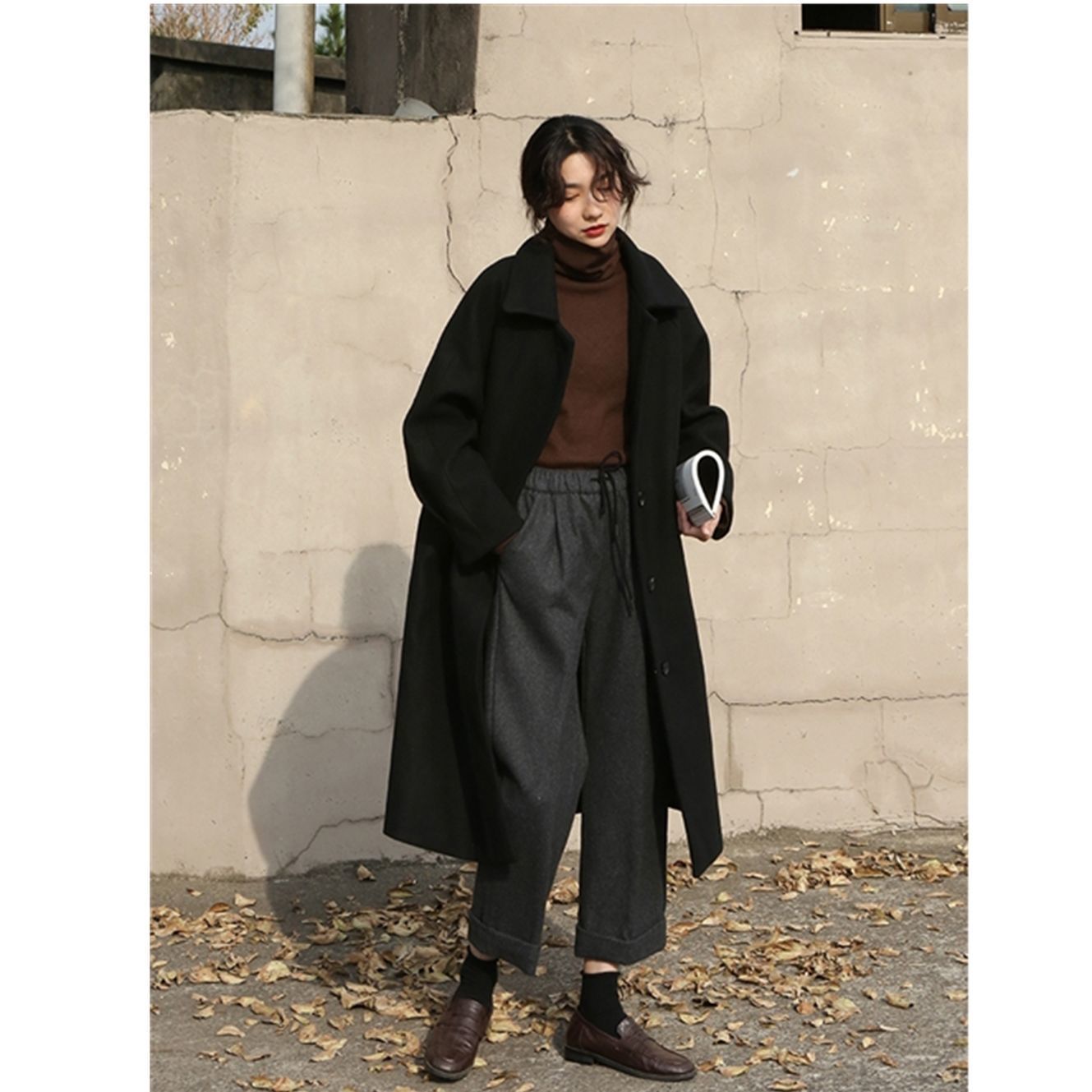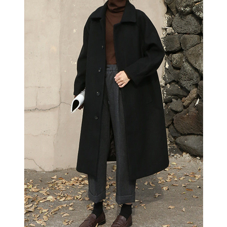 New Korean Autumn/Winter Loose Woolen Coat Women's Mid length Temperament Double breasted Suit Collaoat Long women's Winter Coat