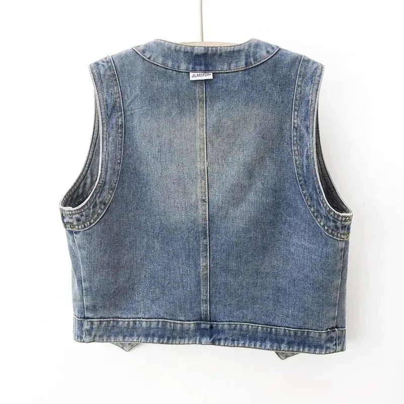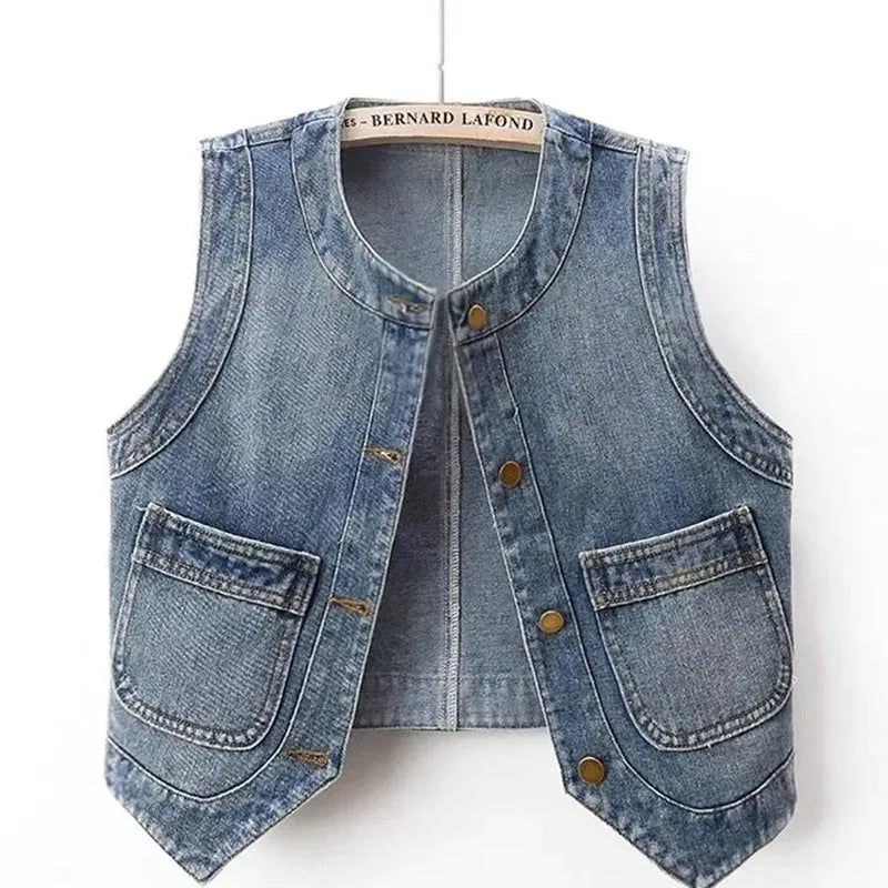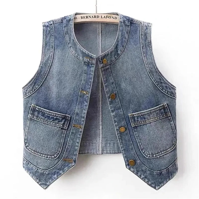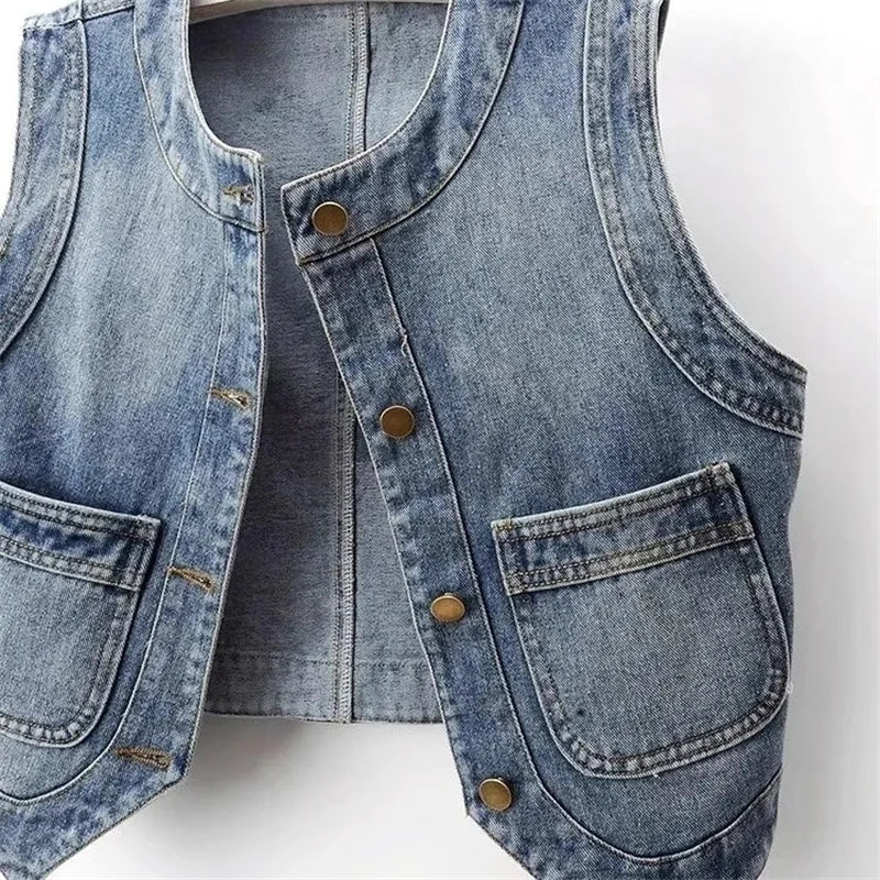 New Ladies Denim Vest Jacket 2025 Summer Retro Versatile Women's Waistcoat Tops Round Neck Sleeveless Female Cowboy Horse Clip