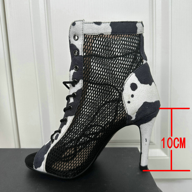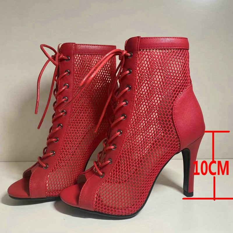 New Sexy High Heels Hollow Mesh Sandals Summer Fashion Trend Comfort Peep Toe Boots Stilettos Jazz Dance Female Shoes Plus Size