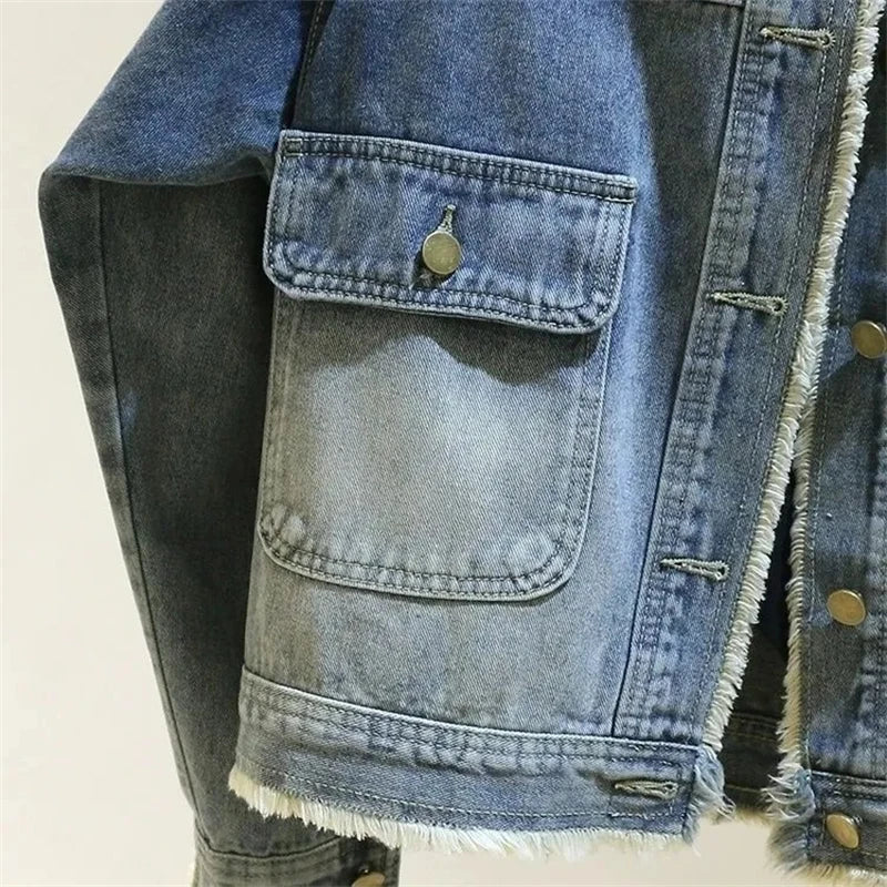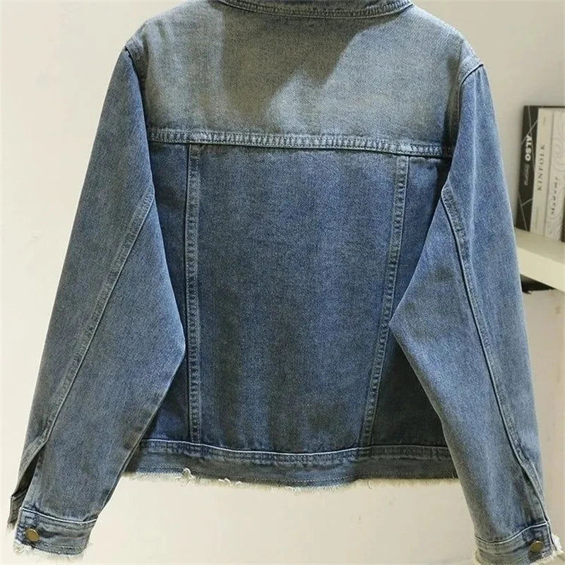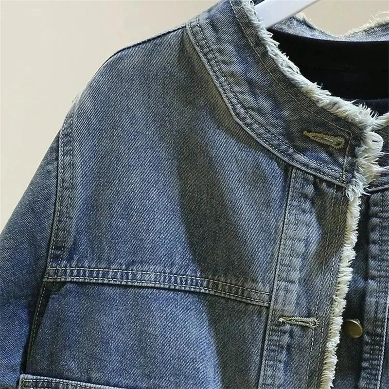 New 2025 Women's Denim Jacket Retro Round Neck Elegant Ladies Leisure Comfortable LooseTemperament Female Cowboy Coat