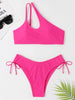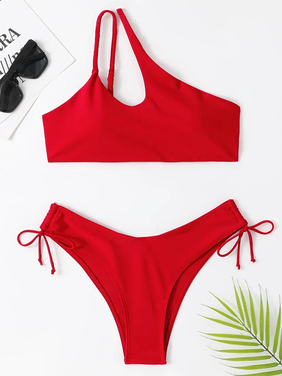 One Shoulder Bikinis Women Cut Out String Swimsuit Solid Sexy Swimwear Female Bathers Bathing Swimming Swim Suit Beachwear