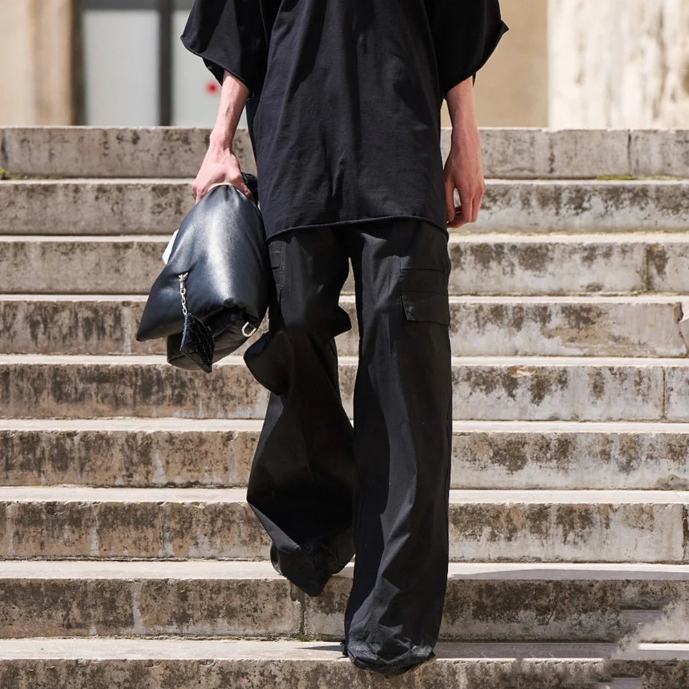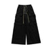 Ro Style Wide Leg Drawstring Black Cargo Pants Unisex Straight Baggy Casual Overalls Men's Streetwear Loose Oversized Trousers