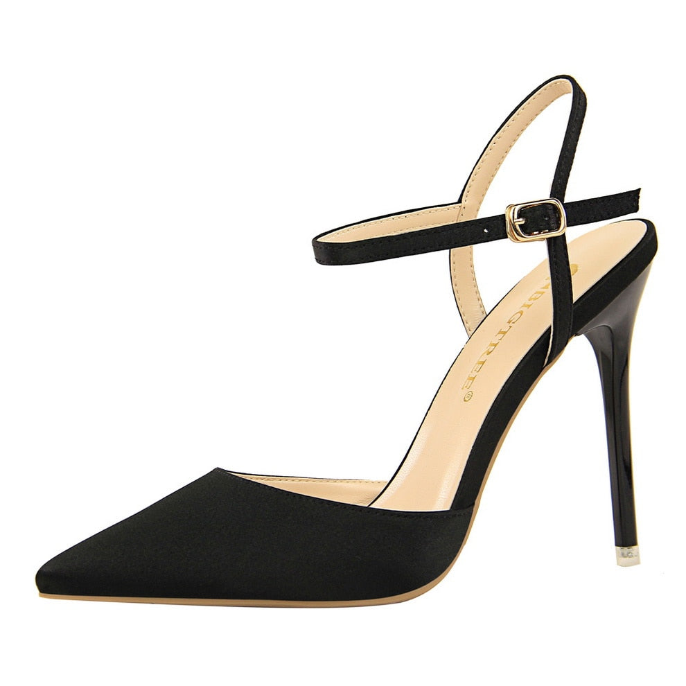 Shiny High Heels Slingback Gold Silver Women Pumps Metallic Sandals Stiletto Pointy Heeled Shoe Wedding Party Woman Sandals 10cm