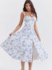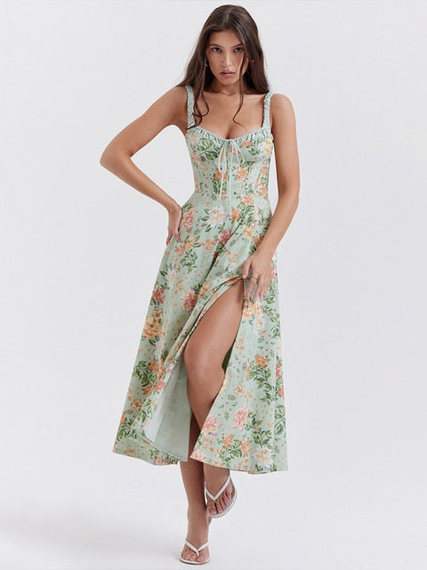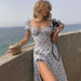 Shoulder Flower Print Sexy Dress For Women High Split Elegant Long Dresses Backless Bodycon Summer Dress Vestidos