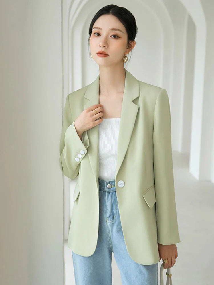 Slim Sweet Women Blazer Fashion Back Slit Long Sleeve Elegant Suit Coats Chic Casual Solid Female Simple Korean Fall Winter Tops