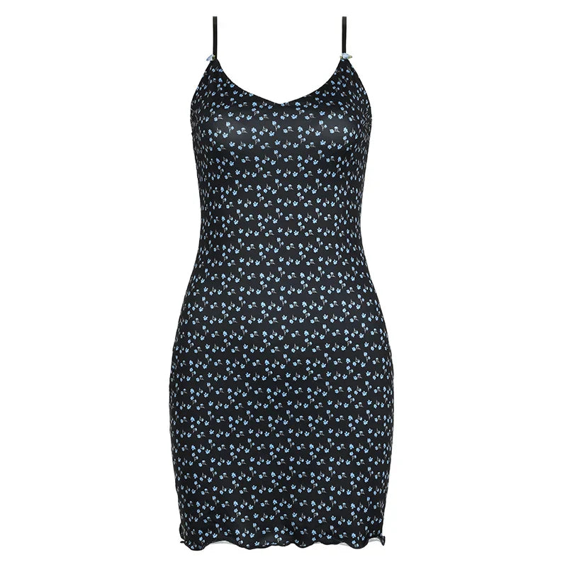 Increase quantity for Small Flowers Printing Strap Frill Dress