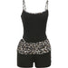 Street Women 2 Piece Set Leopard Print Tracksuit Stretch Sleeveless Bodysuit Tops+Wide Waist Shorts Matching Outfits