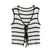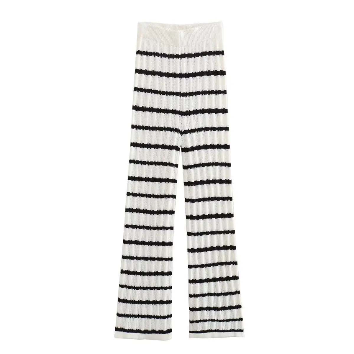Summer Women's V-Neck Crochet Striped Top + High Waist Knitted Pants Set