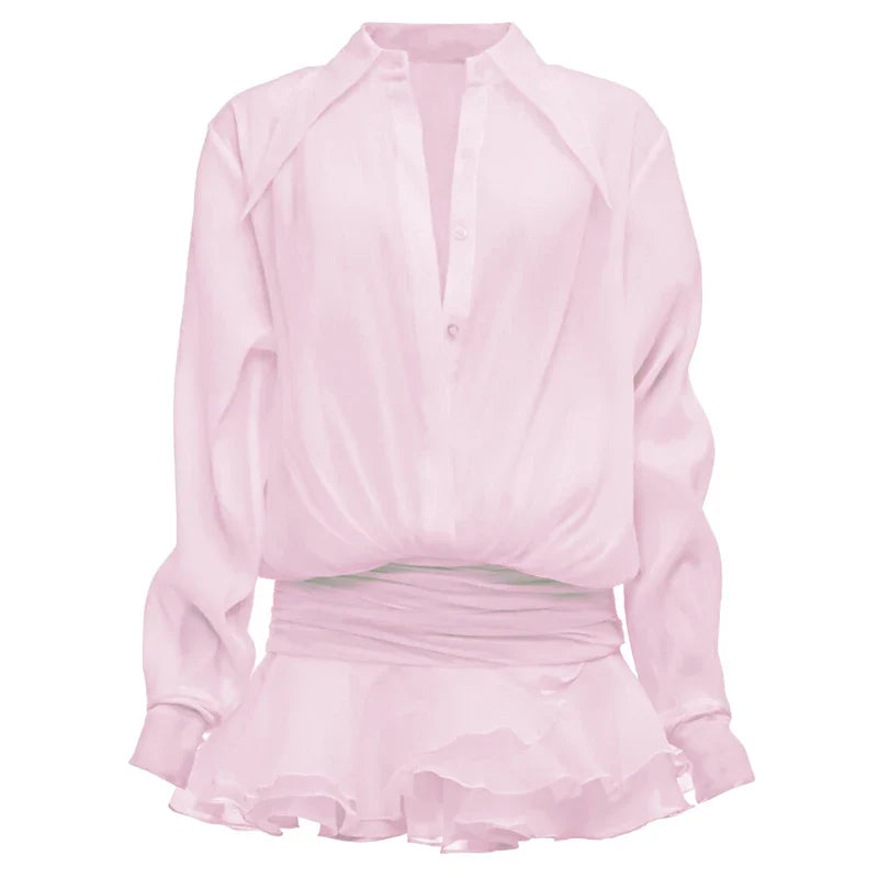 White Chiffon Mini Dress For Women Casual Loose Oversized Pleated Mini Dress See-through Summer Beach Elegant Shirt Dress