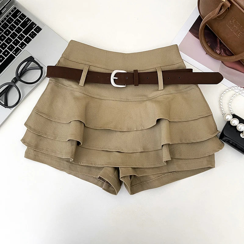 Tiered Ruffle Mini Skort with Belt Built-in Shorts High Waist A-line Short Skirts Women Teen-girl Summer Y2K Beach Vacation