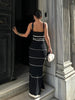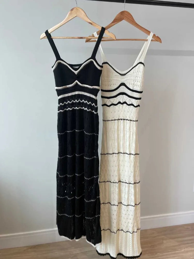 夏季针织撞色法式波西米亚吊带连衣裙镂空纯欲紧身包臀长裙女高çº?/p>