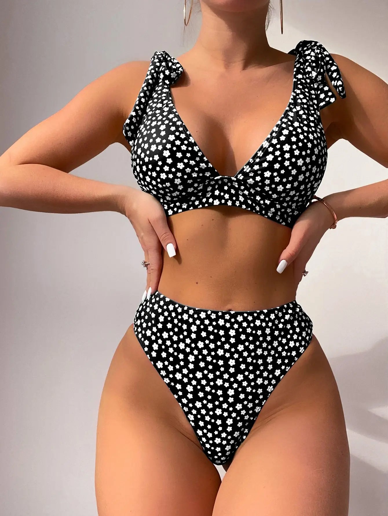 Triangle Bikini Set High Cut Swimsuit Women Sexy Printed Swimwear Female Bathers Bathing Swimming Swim Suit Beachwear