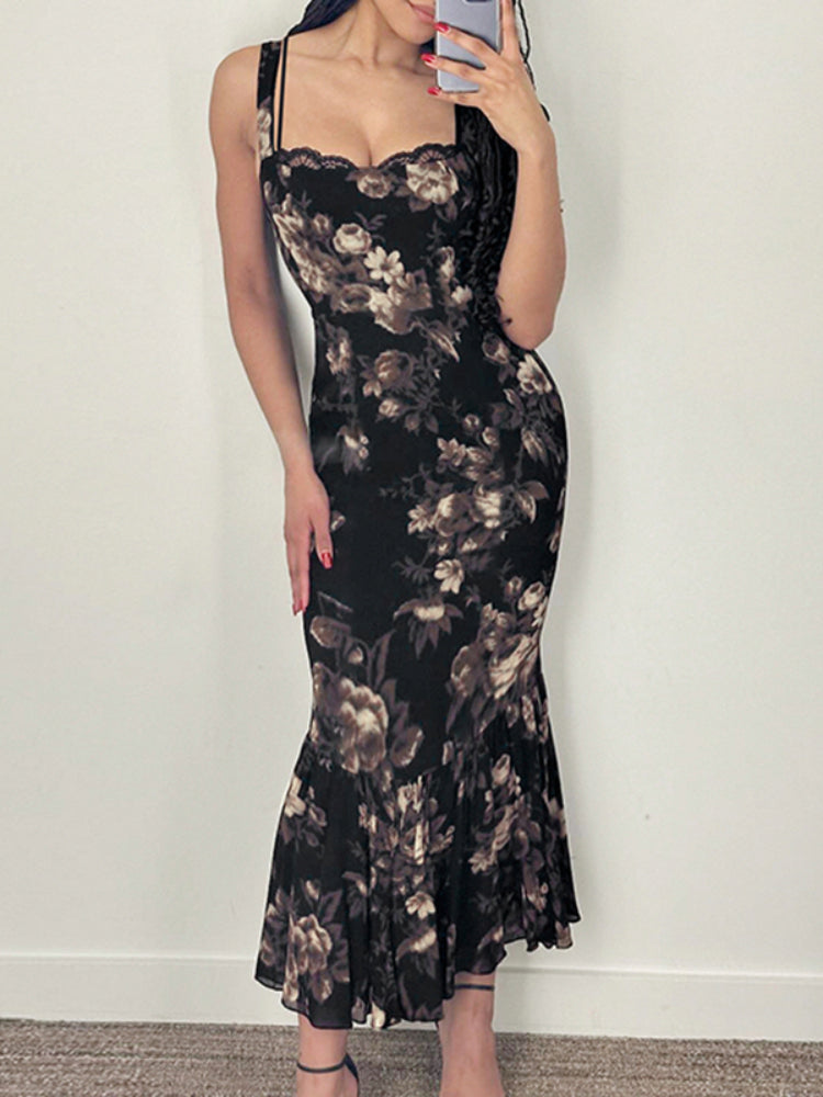 Increase quantity for Vintage Lace Flowers Printing Long Dress