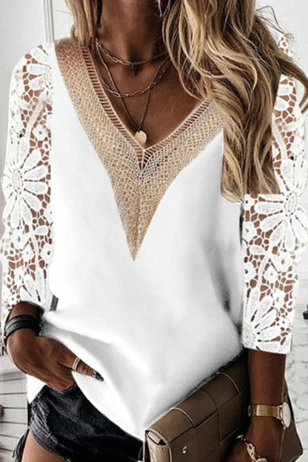 | Element | Lace Hollowed Out Patchwork Pullovers |