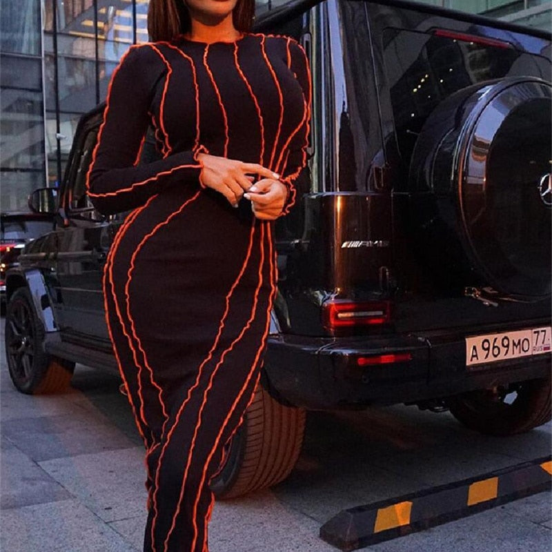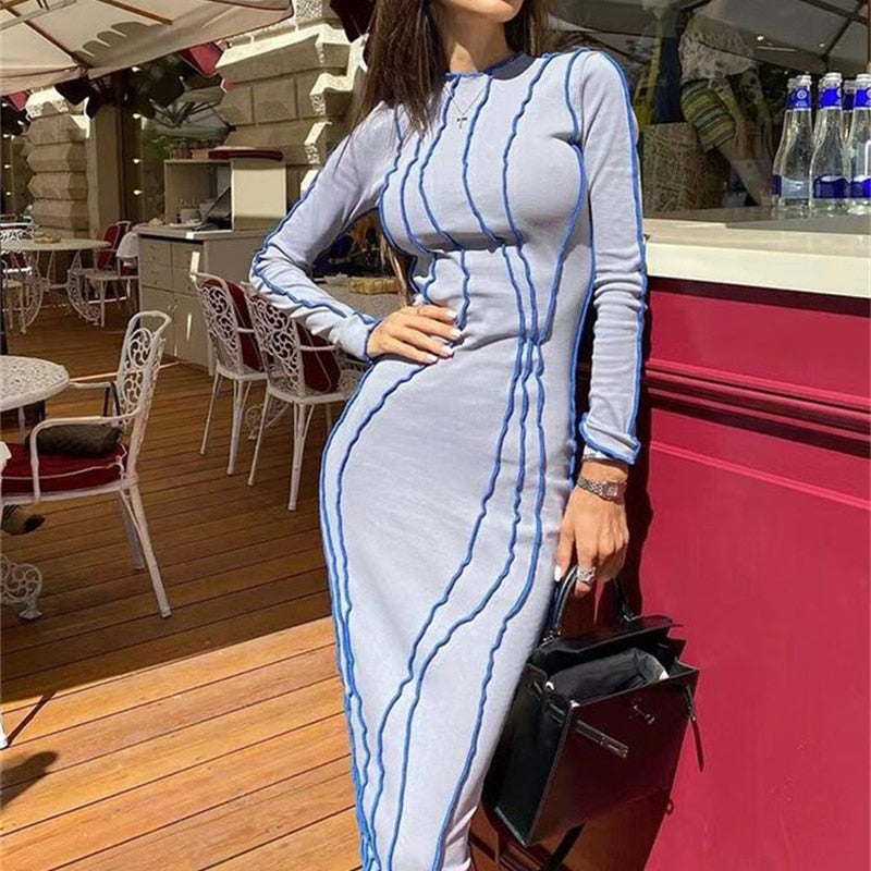 Women Bodycon Dress Sexy Hip Package Midi Dresses Female Slim O-neck Long Sleeve Party Club Lady Vestidos Spring