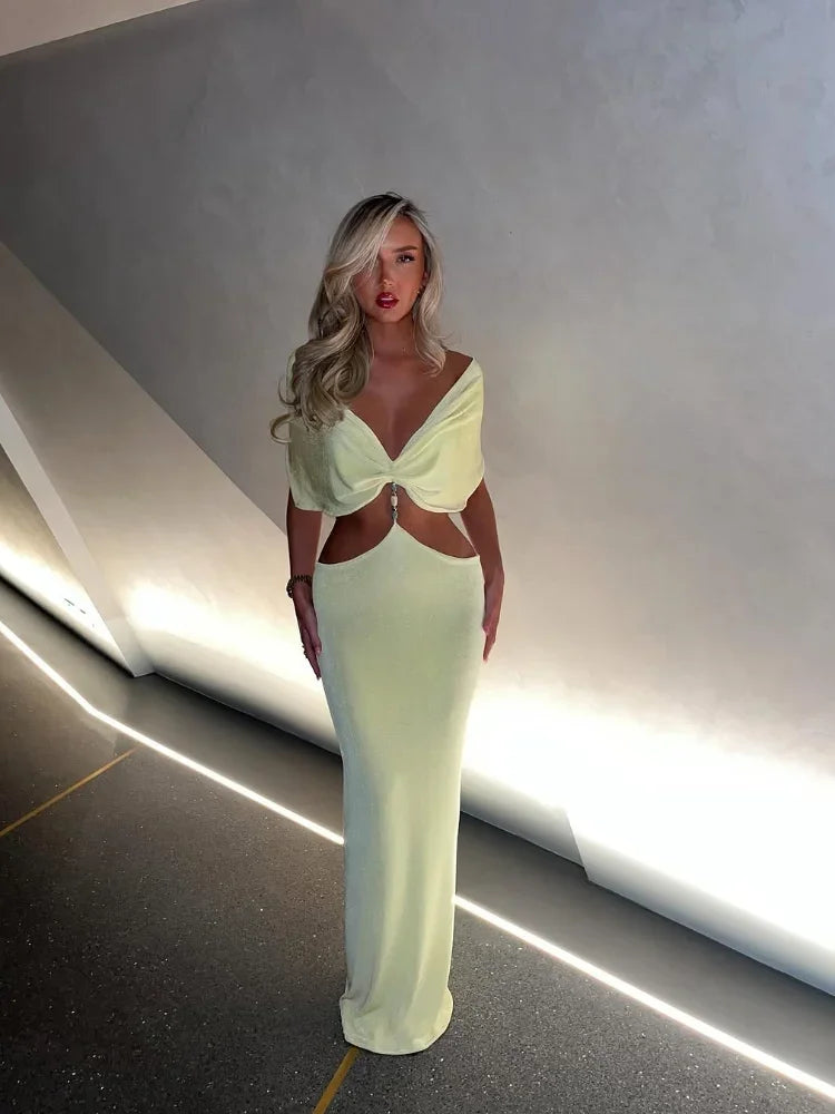 Women Elegant Strapless Hollow Waist Maxi Dress Fashion Backless Pleated Bodycon Long Robes New Sexy Party Clubwear