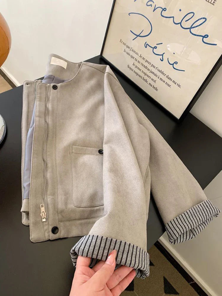 Women Faux Suede Y2K Jacket American Retro O Neck Long Sleeve Casual Coat Retro Casual Harajuku Streetwear Fall Winter Tops