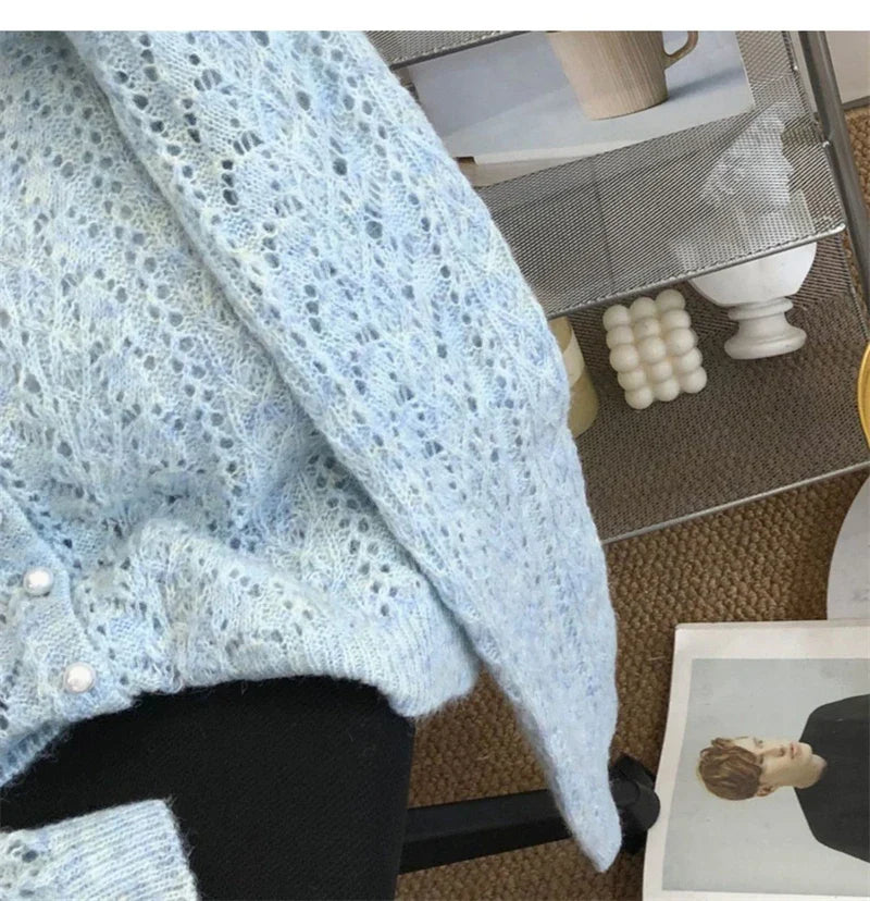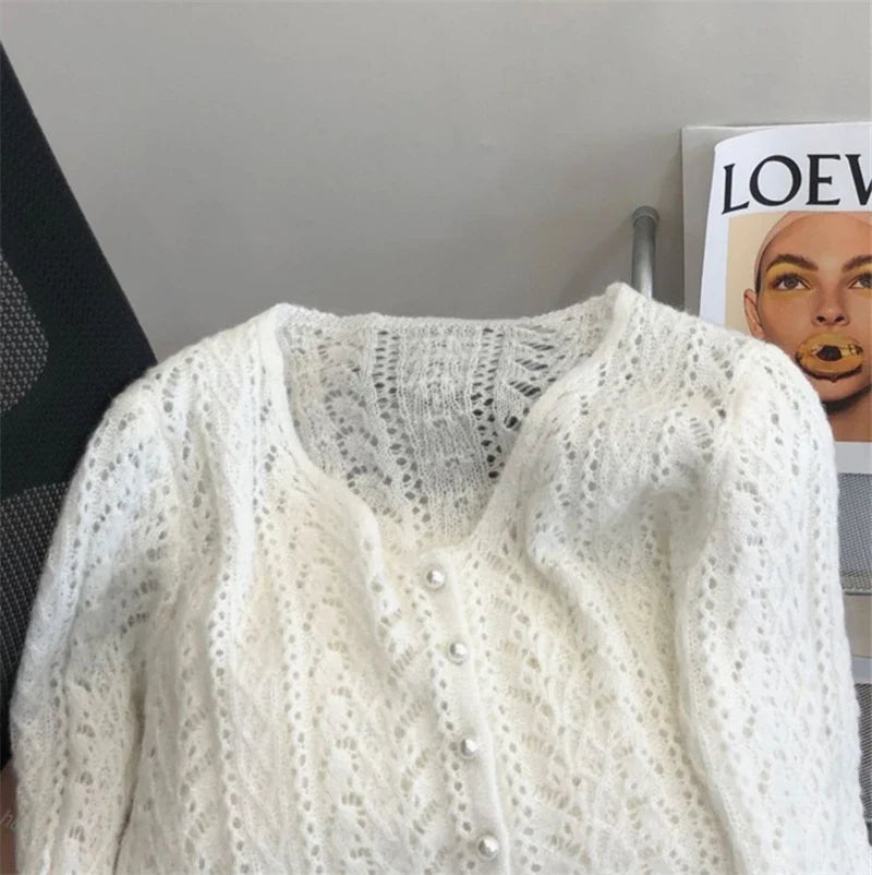 Women Knitted Cardigan Sweater Jacket Fashion Spring Autumn 2024 New Versatile Leisure Thin Style Hollowing Out Ladies Top Coat