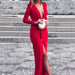 Women Maxi Dress Fashion Solid V Neck Slit Long Sleeve Pleated Nipped Waist Slim Evening Party Long Sexy Dresses