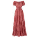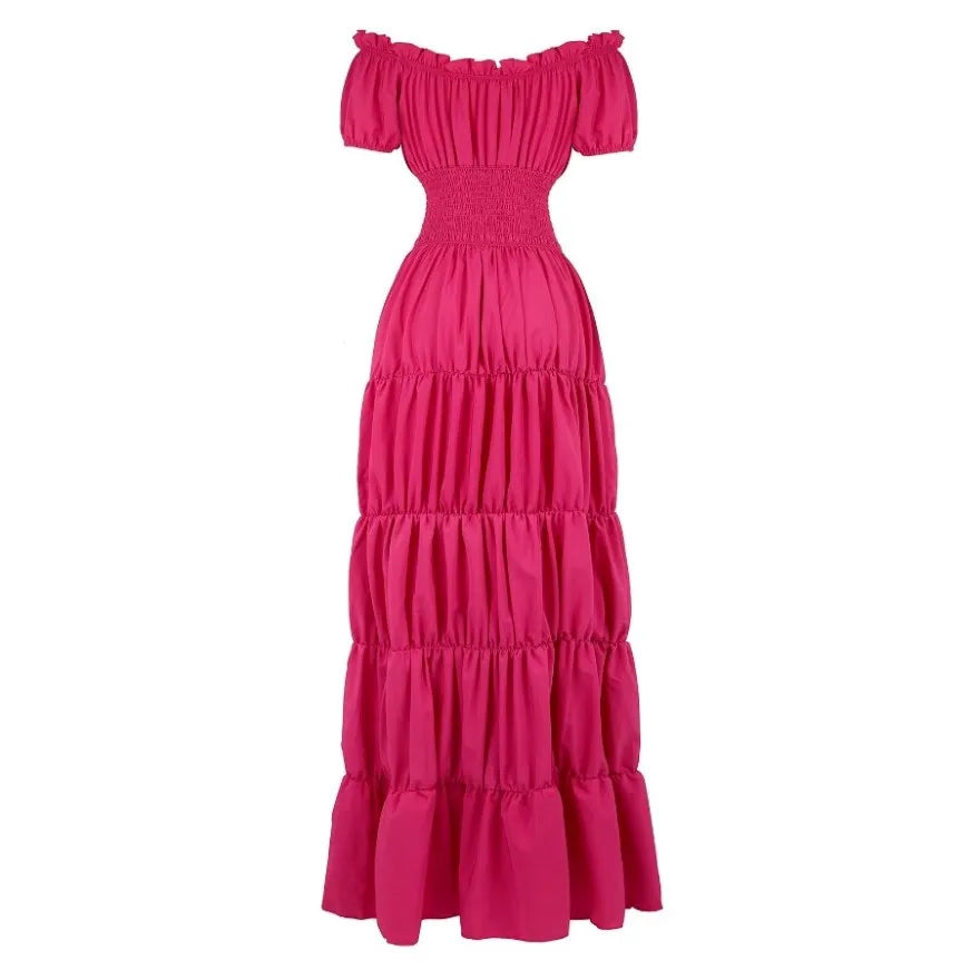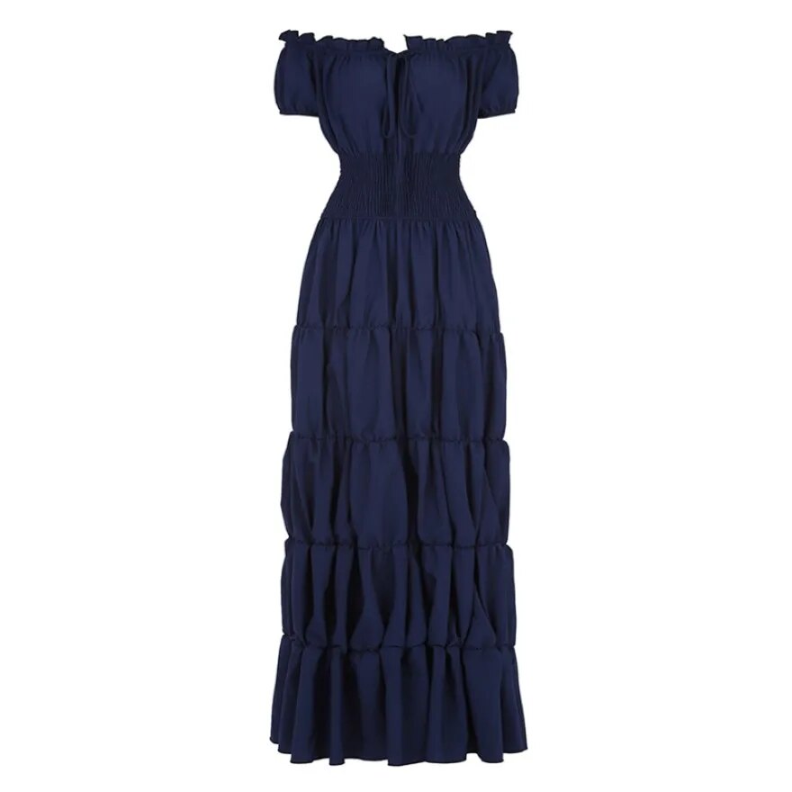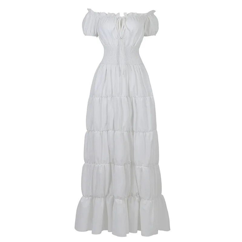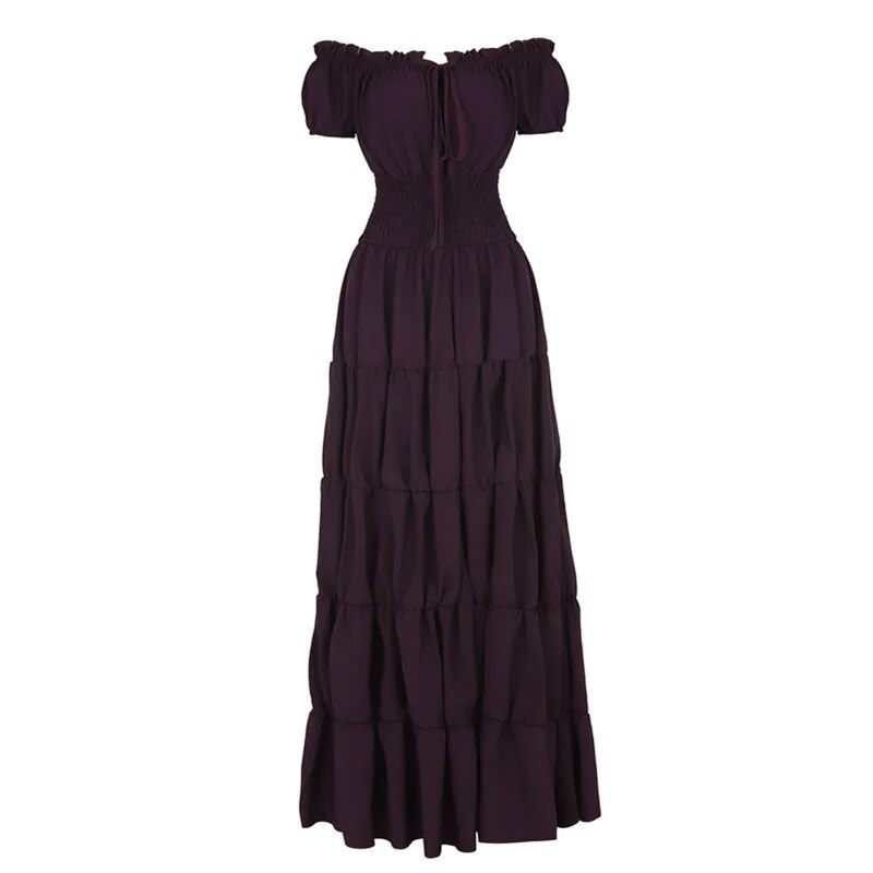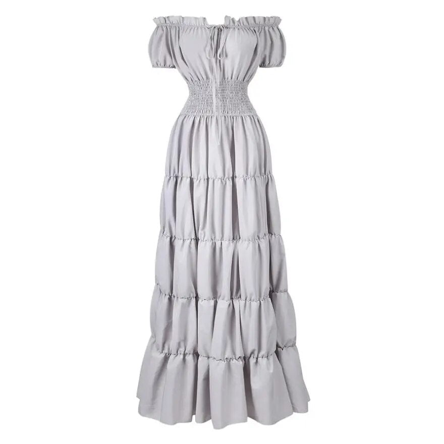 Women Medieval Renaissance Dress Boho Petticoat Short Sleeve Dress Waist Mid-Calf Retro Dress Costume