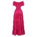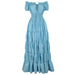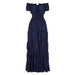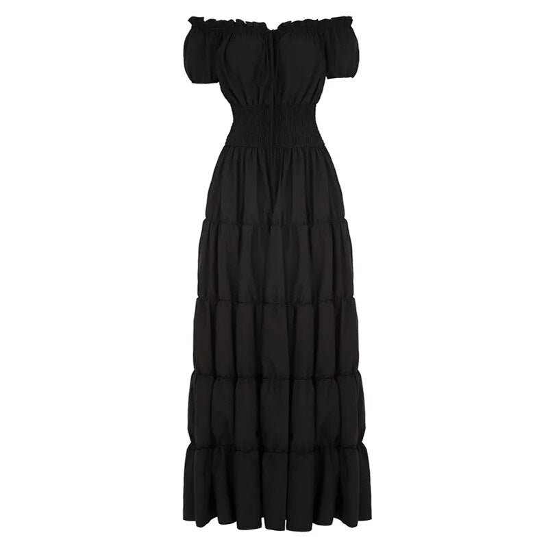 -- Ruffled Short Sleeve. Off the Shoulder. Floor Length. flared flounced large hem.