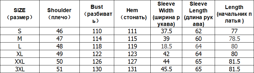 Note:Measuring unit: cm. manual measurement error 2-3 cm is normal