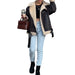 Women PU Leather Coat with Faux Lamb Fashion Lapel Collar Fleece Lining Long Sleeve Zipper Jacket Casual Outwear with Pockets