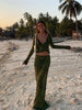 Women Sexy See Through Patchwork Long Skirt Set Fashion Long Sleeve Lace-up Shirt Tops Suit New Vocation Beach Outfits