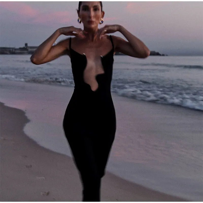 Model Number: Sexy Wavy Edge V Neck Sling Long Dress