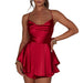 Women Solid Color Cami Playsuits Cowl Neck Sleeveless Short Jumpsuits Summer Cross Tie-Up Backless Romper Clubwear