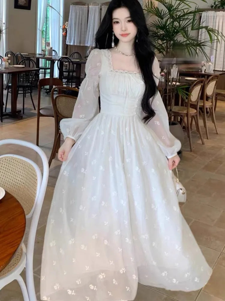 Women Summer Elegant Fairy Midi Dress Causal Long Sleeve Vintage Party Dress Female Ruffles Party Gown Dress Korean Chic Y2k New