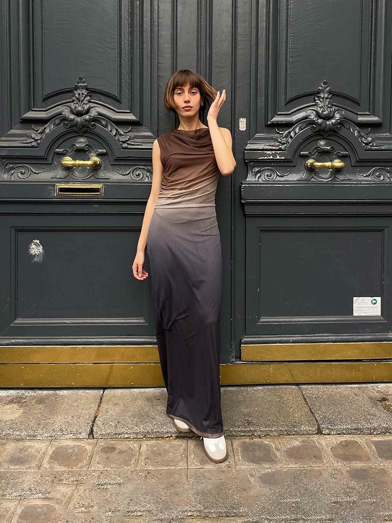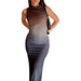 Women's Bodycon Long Dress Sleeveless Round Neck Gradient Print Ruched Tank Dress Beachwear
