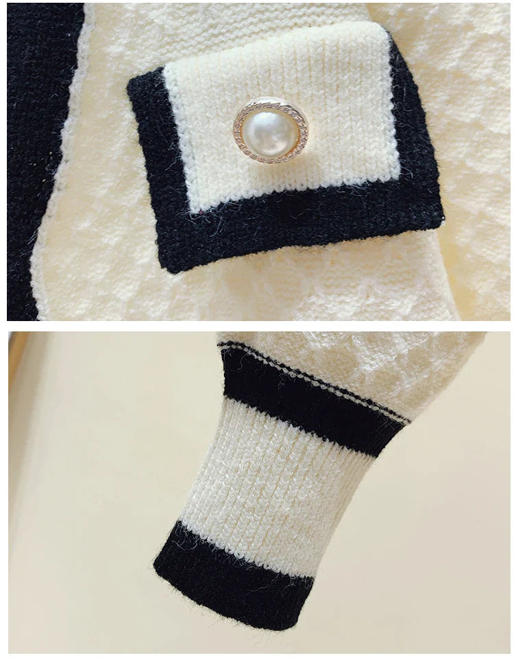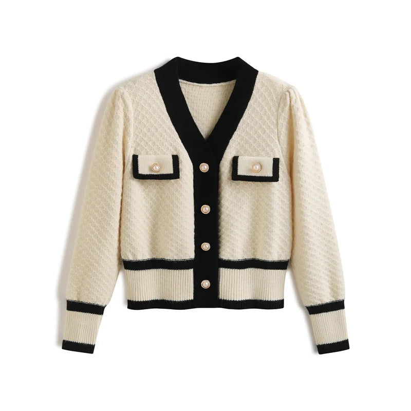 Women's Cardigan with Pearl Button Long Sleeve Knit Sweater Jacket Coat Cardi Autumn Winter Elegant French Chic Outfit