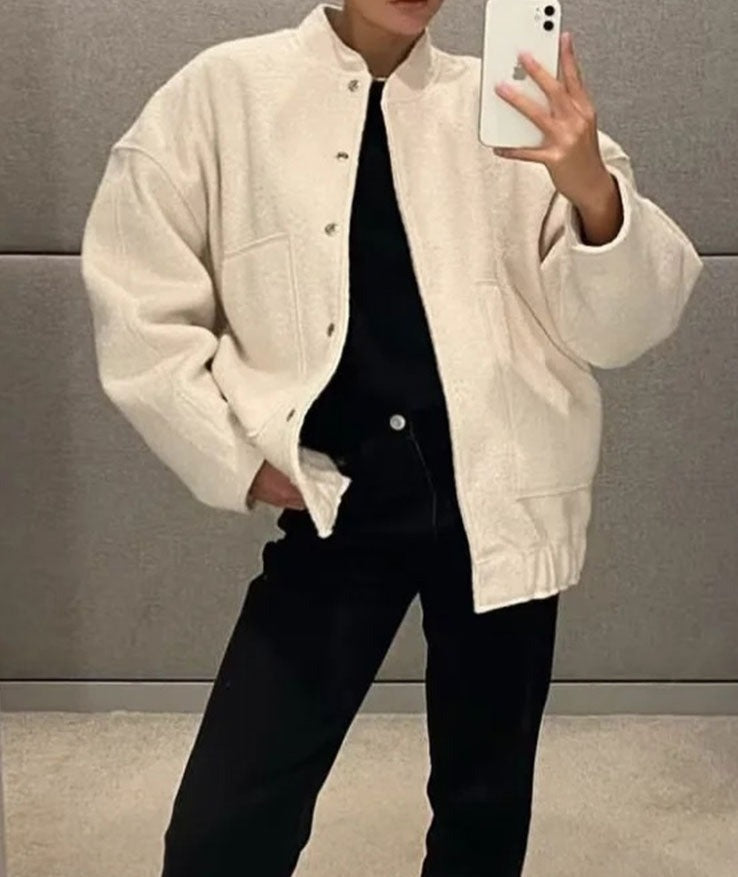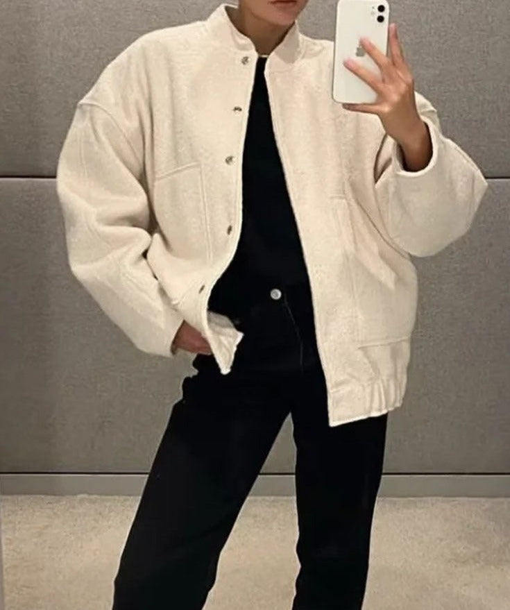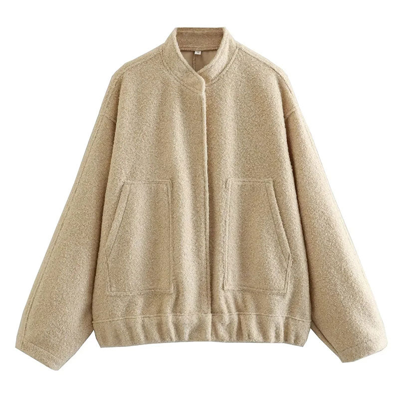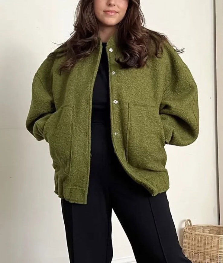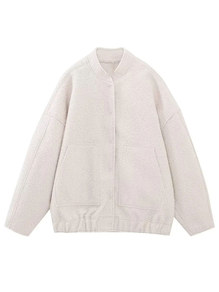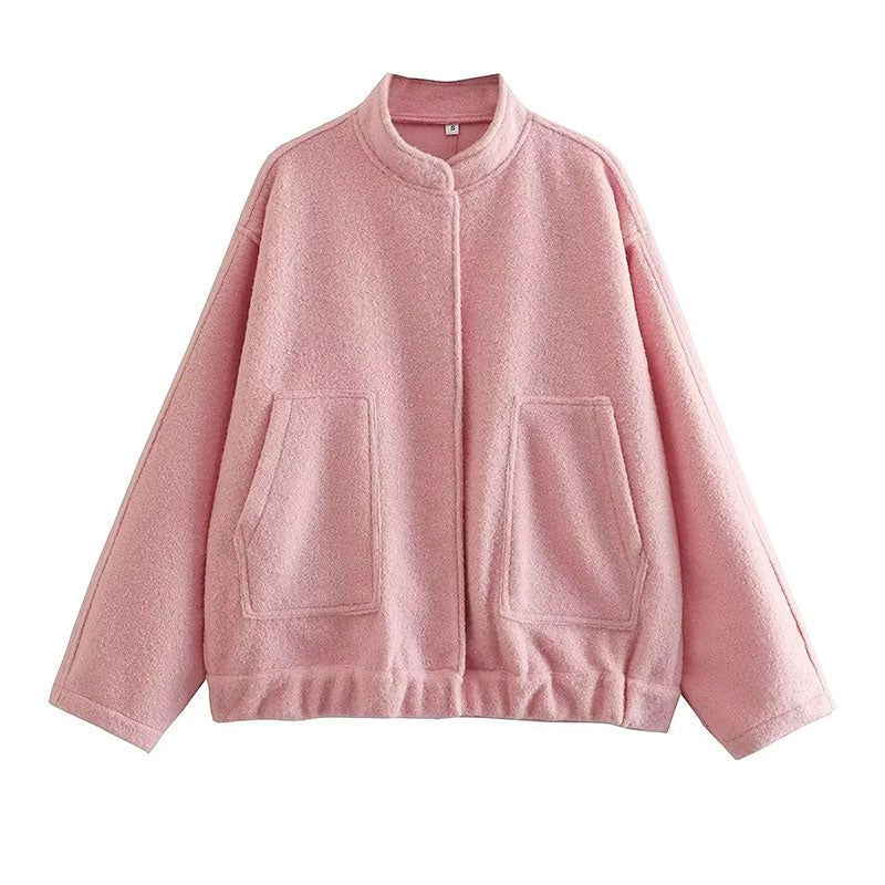 Women's Elegant Solid Coat Button Long Sleeve Pocket Bomber Jacket Female Spring Casual Loose Streetwear Coats