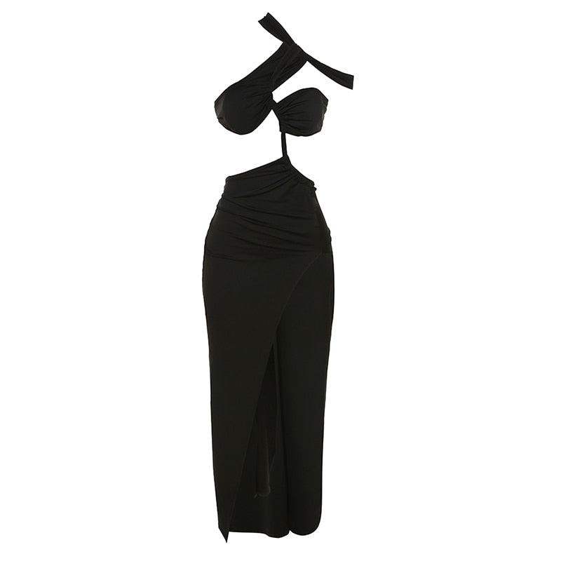 Women's Solid Breast Wrap Neck Maxi Dress Long Backless Elegant Casual Fashion Streetwear Party Wear Lady Vestidos