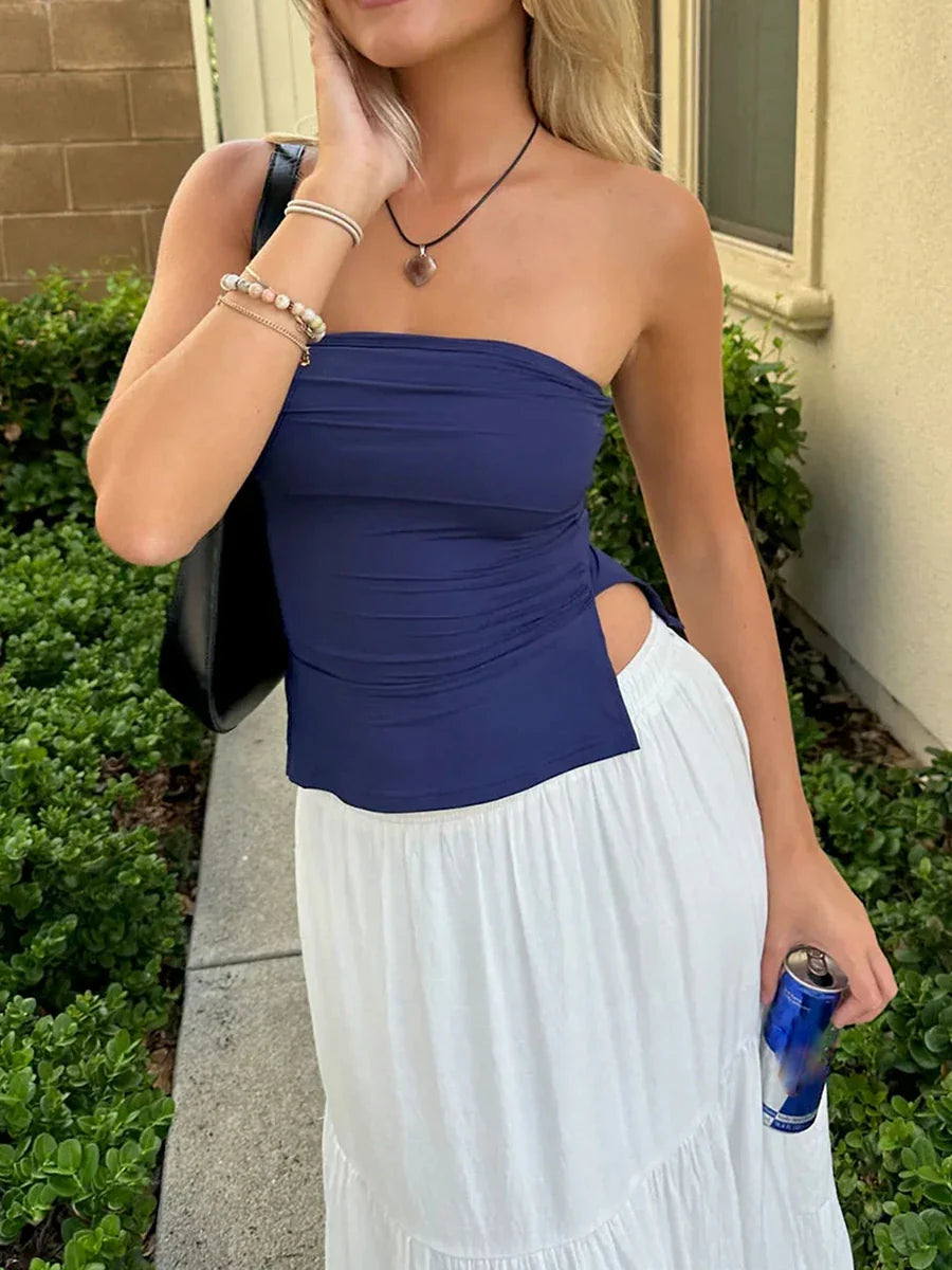Women's Y2K Clean Fit Retro Tube Tops Solid Color Slit Strapless Tank Tops Summer Backless Bandeau Tee Streetwear
