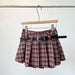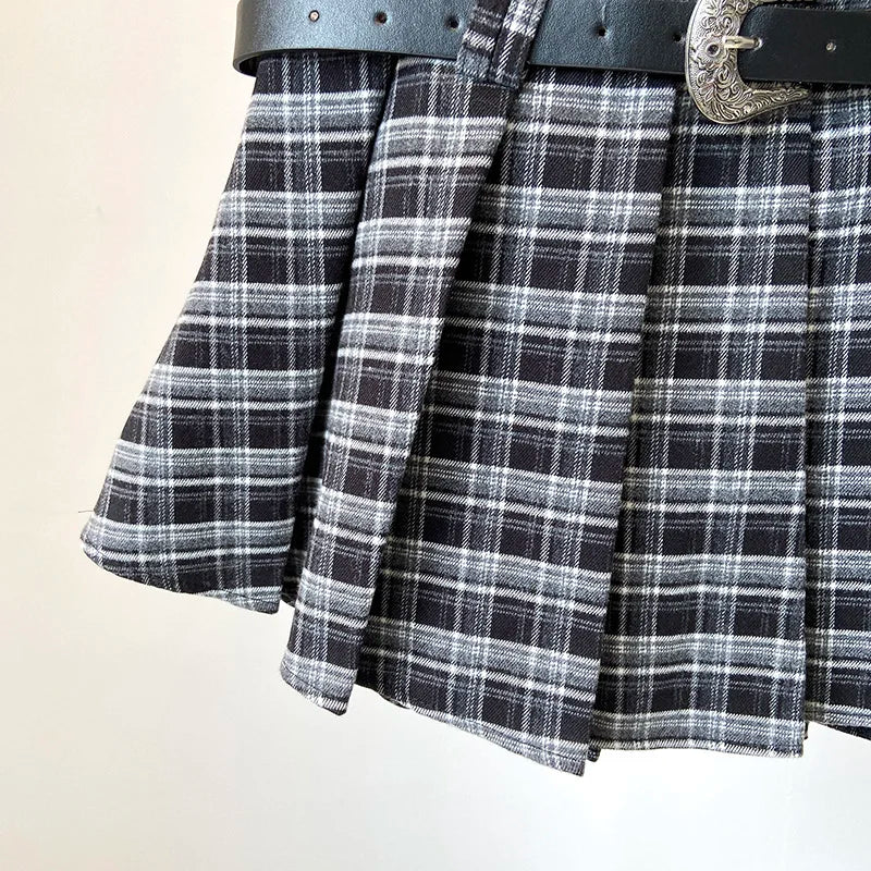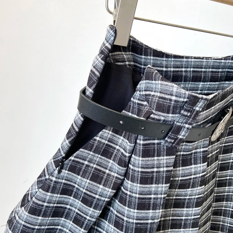 Y2K Checkered Pleated Skirt with Belt Thick Woolen Plaid Short Skirt Teen-girl 9s Preppy Style Autumn Winter Outfit