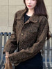 Y2K Cropped Leopard Denim Jacket Women Vintage Streetwear Long Sleeve Slim Short Coat American Harajuku Female Hip Hop Tops