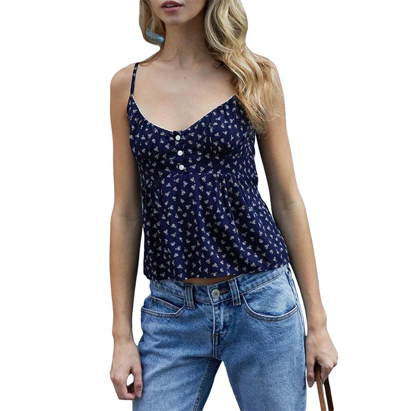 Y2k Fairycore Spaghetti Strap Camisole Women Cute Peplum Vest Coquette Low Cut V-neck Babydoll Tank Boho Going Out Crop Top